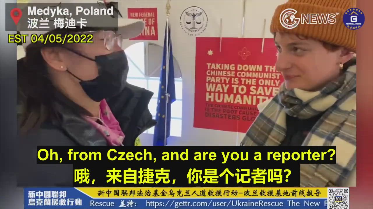 【Ukraine Rescue】 04/05/2022 Nicole introduces to Czech radio reporter Estelle that the Chinese tent in Medyka is not from Communist China, but from the NFSC, which is committed to eradicating the CCP; in addition to this humanitarian rescue operation, we are trying to break the CCP’s censorship and provide truthful information to people in China who have been severely brainwashed by the CCP’s propaganda, freeing them from the fear of CCP coercion
