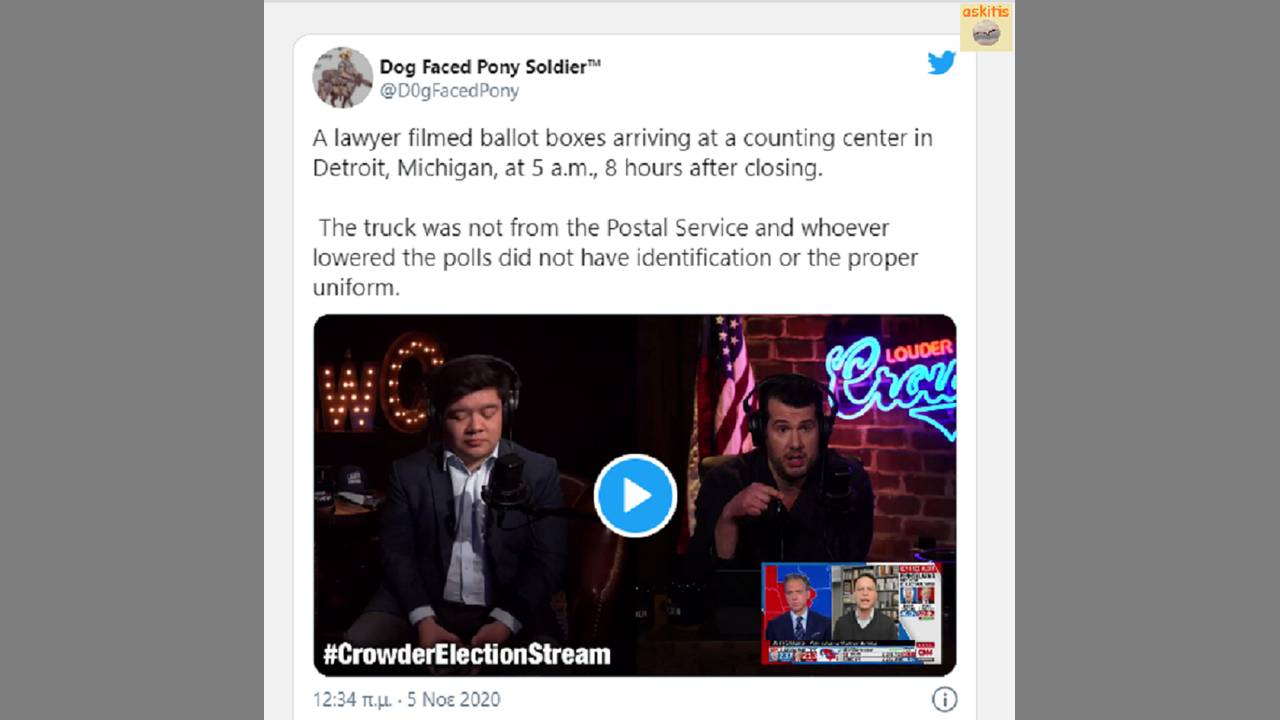 Steven Crowder ¨A lawyer filmed ballot boxes arriving at a counting center in Detroit- Michigan...