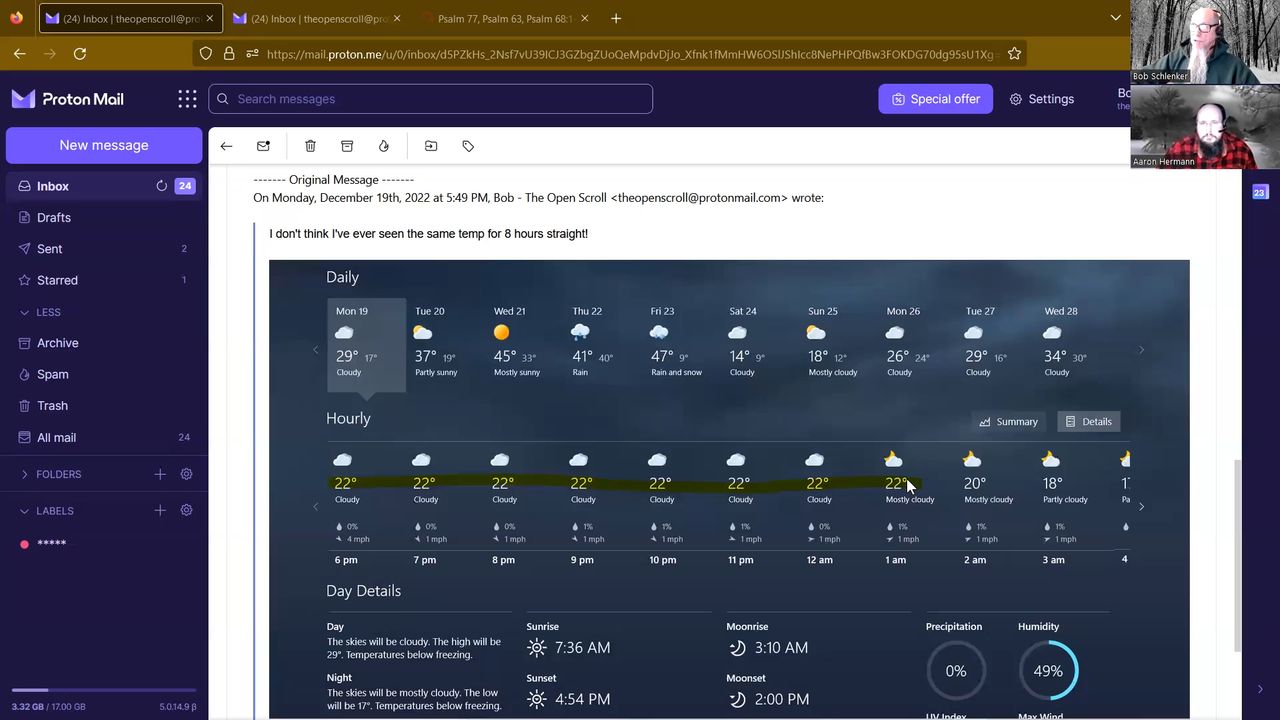 22 degrees for 8 hours straight? Well-timed reboots? In this video, Bob and Aaron share the latest compelling signs of the impending reset of time. We finish the video with Aaron reading scriptures.