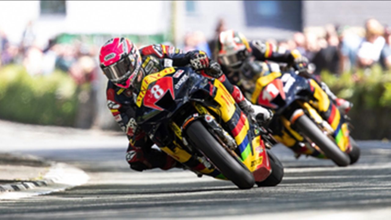 Racers battle for the fourth win of the TT week. The RL360 Superstock race is the rawest of all, consisting of road-legal motorcycles without lights & indicators. Race one of two.