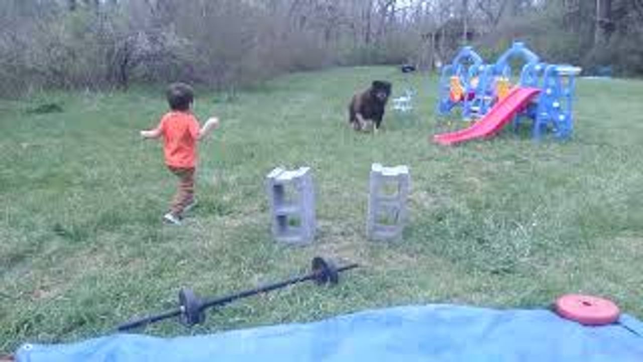 Play Time with Grandson Wyatt and Puppy and Blackie and Maverick in back yard.