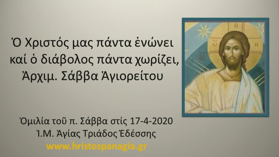 Ὁ Χριστός μας πάντα ἑνώνει καί ὁ διάβολος πάντα χωρίζει, 17-4-2020, Ἀρχιμ. Σάββα Ἁγιορείτου