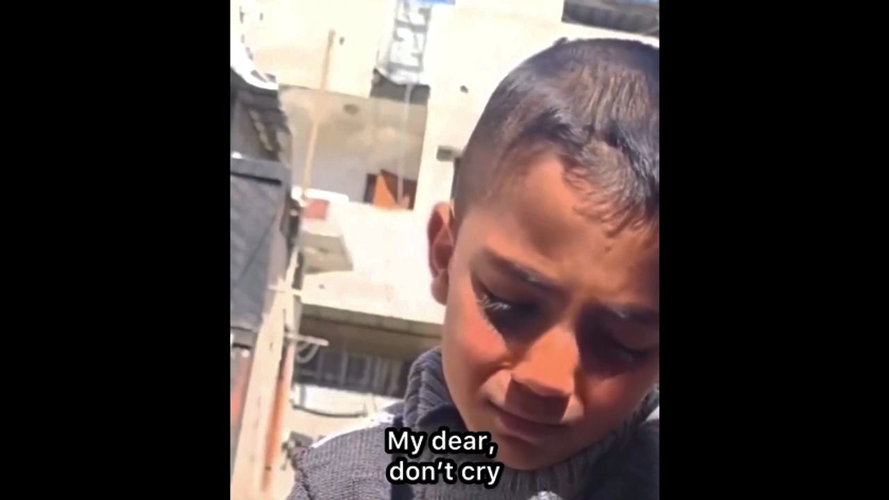 Little boy in Palestine is asked about the bombing of his family's house in Gaza after Israel bombed it causing the death of his whole family. His face reads that he's alone in this world and is forced to continue on his life without justice, let alone not having his closest loved ones with him anymore.