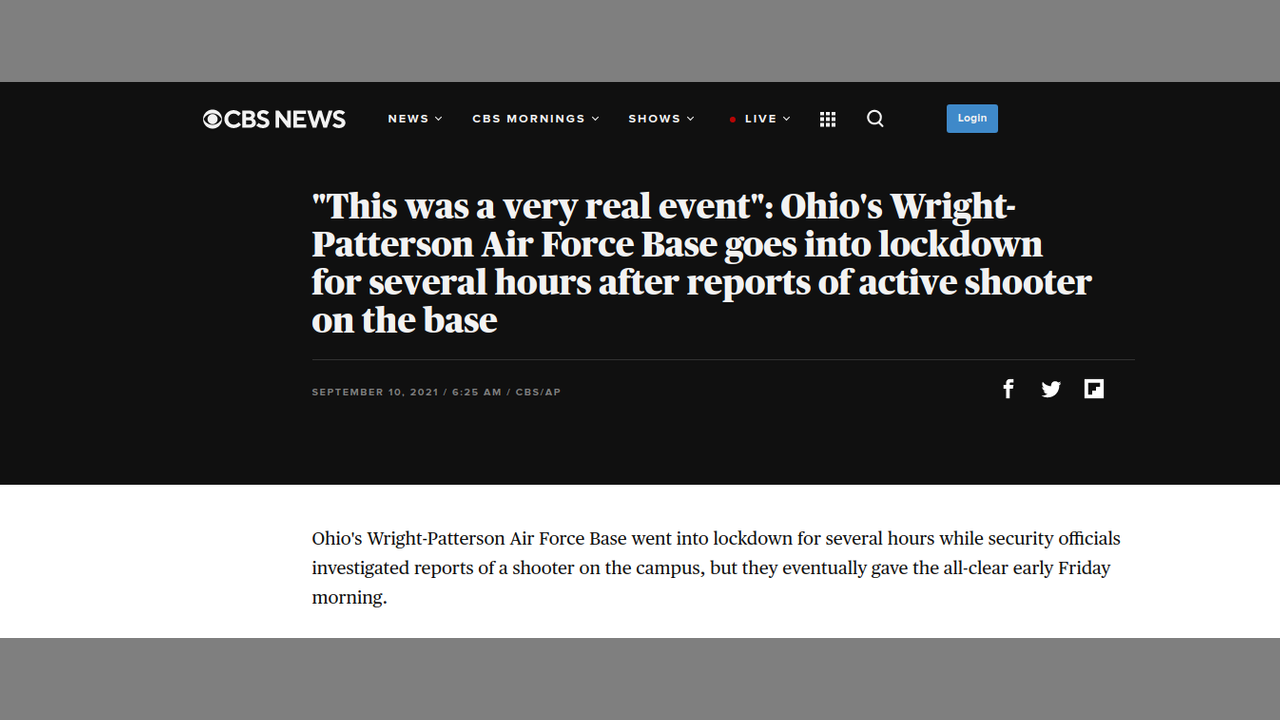 False Alarm Ohio Air Force Base? Reported Active Shooter