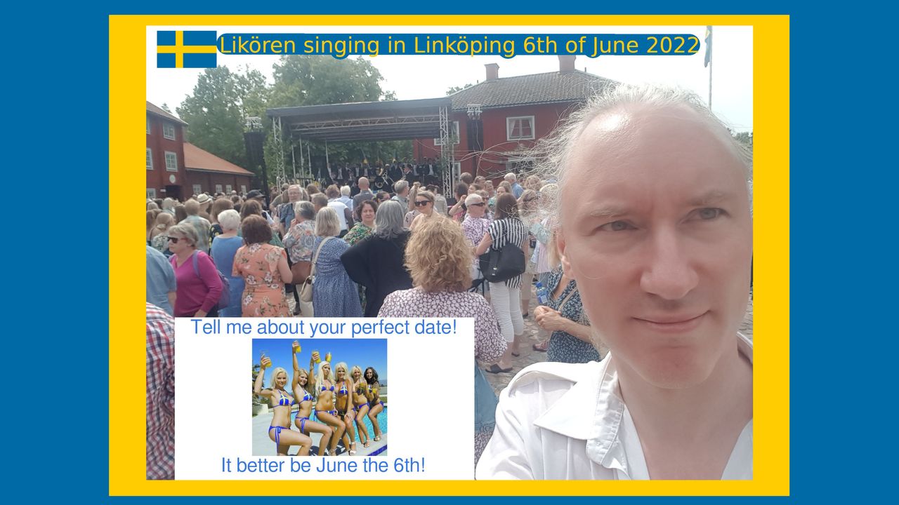 "Främling" sung by Likören in Linköping. Describe a perfect date! It's 6th of June for Sweden