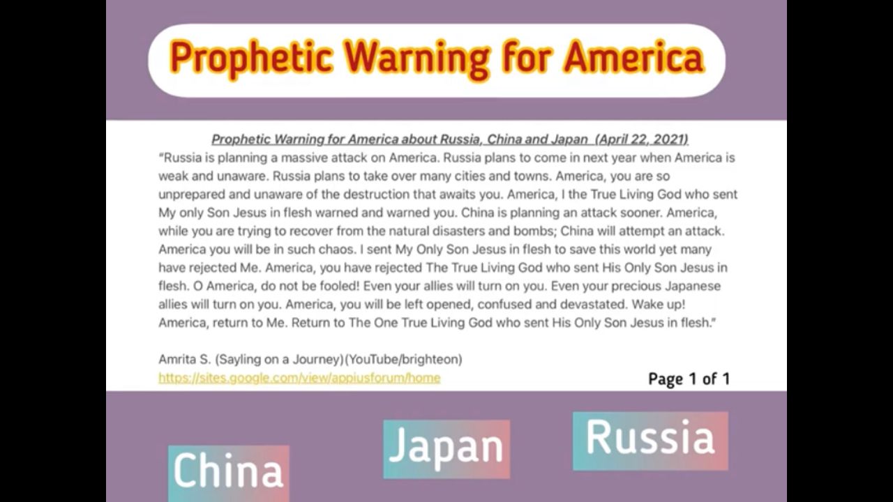 Prophetic Warning for America about China, Russia and Japan. April 22, 2021