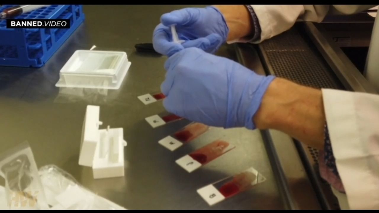 Pathologist Dr. Ryan Cole and The Highwire Host Del BigTree examine freshly drawn blood under a microscope after it is exposed to different COVID Clot Shots.