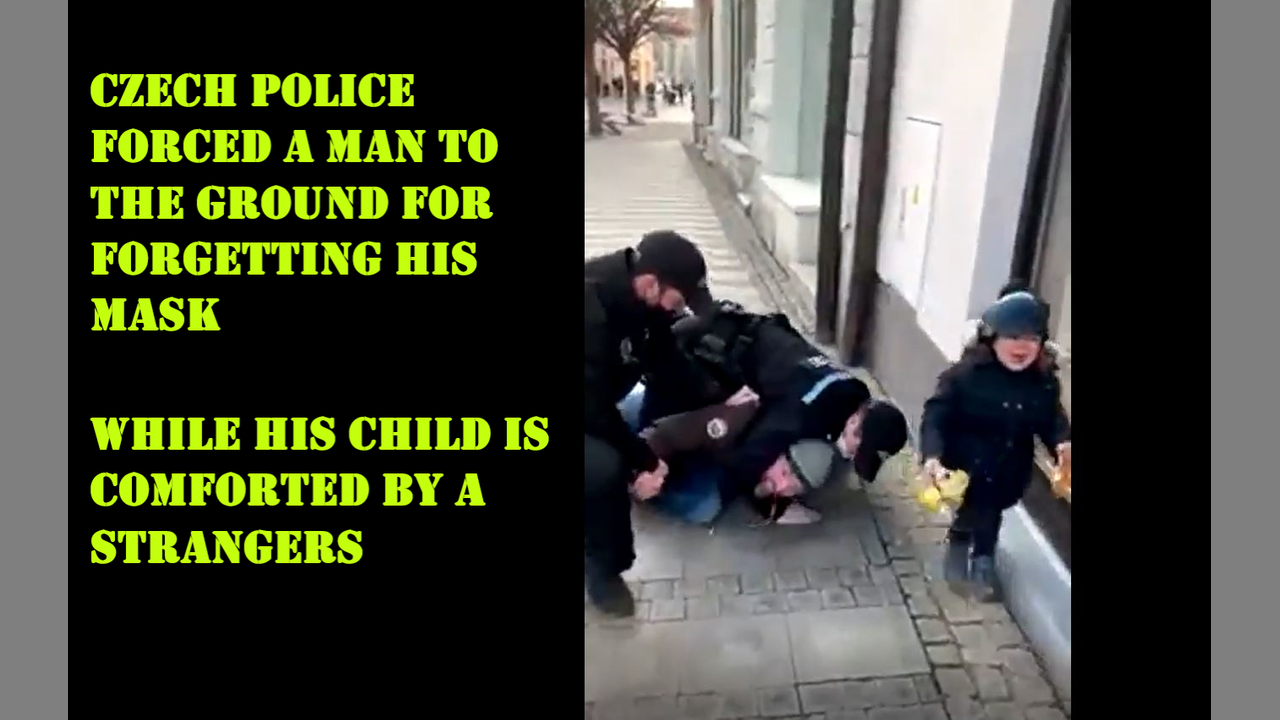Czech Police Forced A Man To The Ground For Forgetting His Mask While His Child Is Comforted By A Strangers
