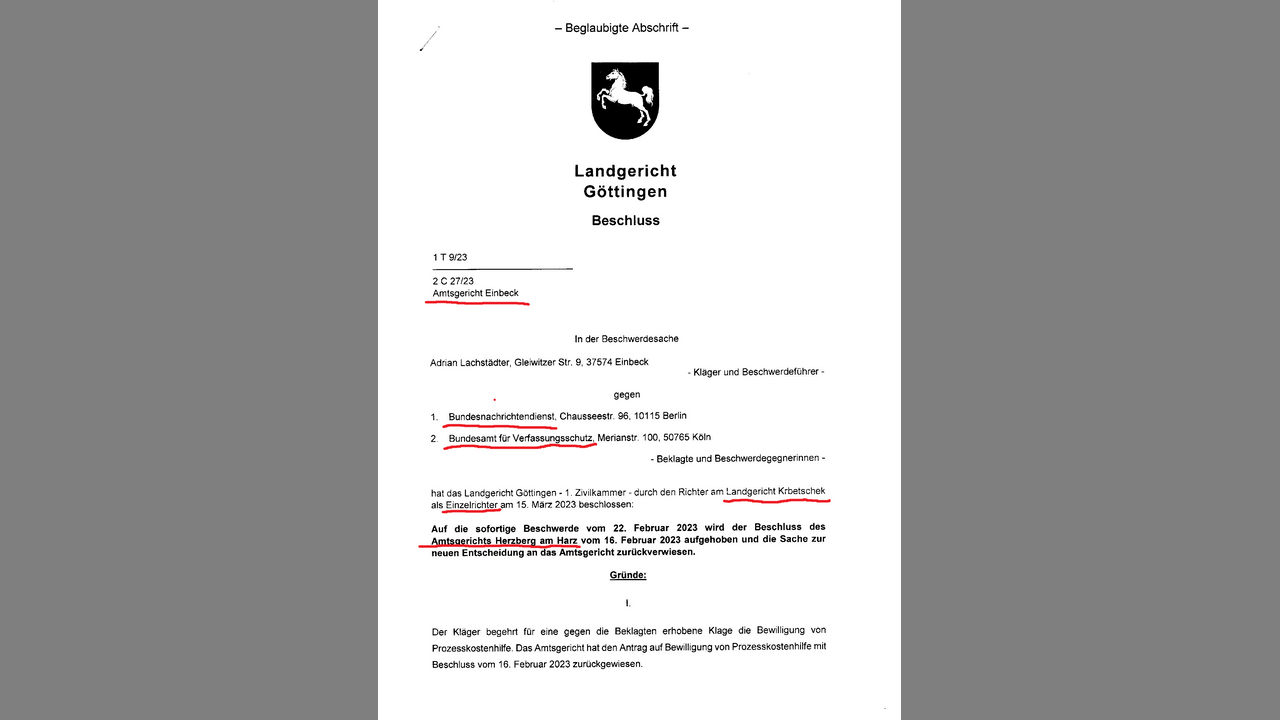 Darüber darf ich KEINE Auskunft geben. Telefonat mit Bediensteter "Obersekretärin" Lux vom LG Göttingen.