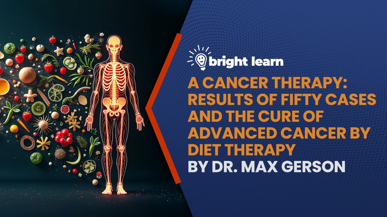 "A Cancer Therapy: Results of Fifty Cases and the Cure of Advanced Cancer by Diet Therapy" by Dr. Max Gerson presents a radical and controversial approach to cancer treatment that challenges conventional medical practices. Dr. Gerson's therapy is grounded in the belief that cancer is a systemic disease caused by the body's inability to detoxify and the deficiency of essential nutrients due to modern agricultural and lifestyle factors. His holistic method focuses on restoring the body's natural healing mechanisms through a strict regimen that includes detoxification, a radical diet and nutritional supplements. The therapy emphasizes frequent coffee enemas and castor oil treatments for detoxification, a diet rich in fresh, organic fruits and vegetables with an emphasis on raw foods and juices and the use of potassium and iodine supplements to support metabolic processes. Additionally, liver therapy plays a crucial role, with liver injections and fresh calf's liver juice used to enhance liver function. Despite facing significant opposition from the medical establishment, Dr. Gerson's book provides detailed case studies of fifty patients, many of whom were considered terminal, offering compelling anecdotal evidence of the therapy's potential. While critics highlight the lack of rigorous scientific evidence and potential risks, the book invites readers to reconsider the body's capacity for healing and the importance of a comprehensive approach to cancer treatment.