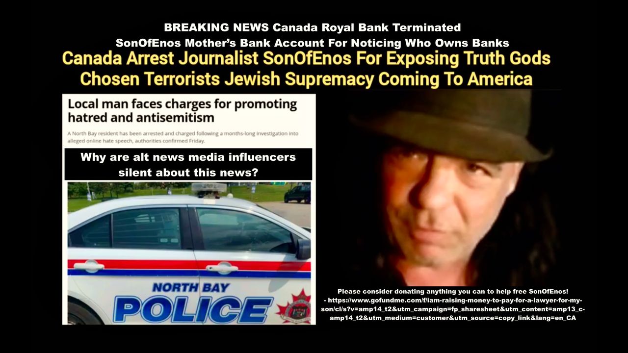 BREAKING NEWS Canada Royal Bank Terminated SonOfEnos Mother Bank Account For Noticing Who Owns Banks. I, Victor-Hugo Vaca II received this information from SonOfEnos Mother minutes ago. To date, of all the news outlets notified of SonOfEnos arrest for noticing only Stefan Verstappen has reported on this developing story. It shows everyone how fake and gay both the mainstream and alternative news media is today. They say they are about free speech but in reality they want more censorship, just ask Jim Fetzer who has publicly waged a crowd funded Free Speech fatwa and censorship crusade to shut down Bitchute and Rumble because they both host my channels.