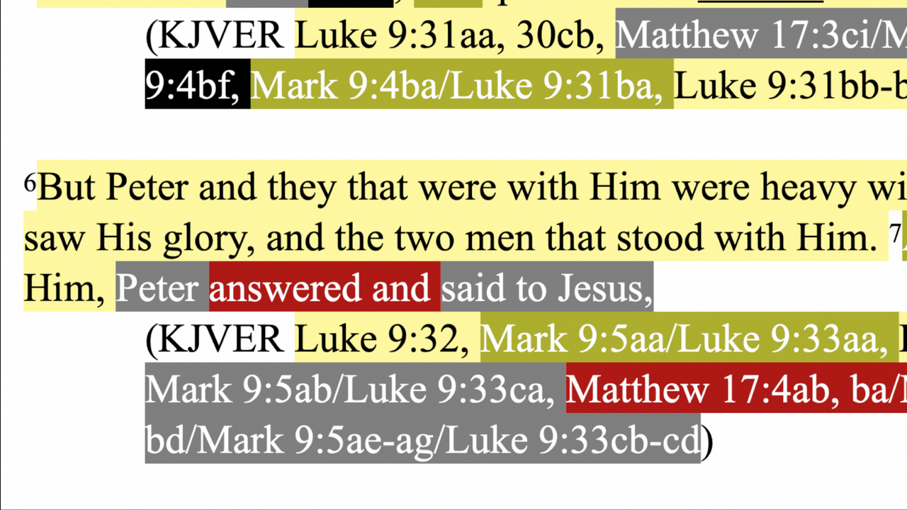 Matthew 17:4, Mark 9:5, Luke 9:32-33 combined