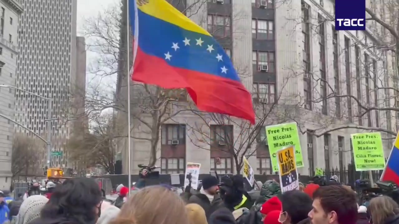 A protest against U.S. Regime's actions in Venezuela is taking place outside a courthouse in central New York, where Maduro was previously brought.