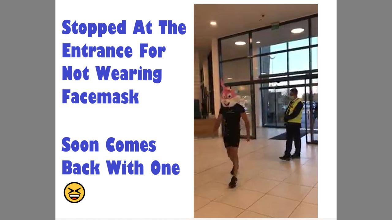 Stopped At Entrance For Not Wearing Facemask-Soon Comes Back With One 😆