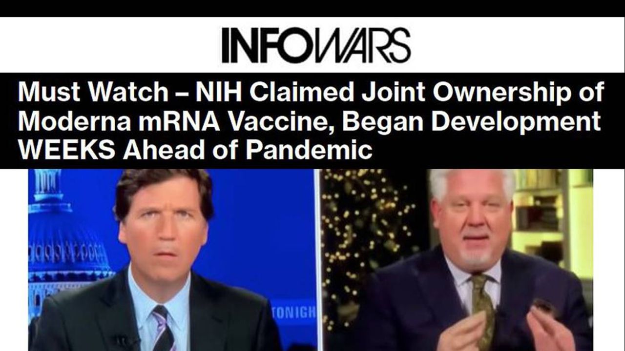 Appearing Wednesday on Tucker Carlson Tonight, radio host Glenn Beck broke down the astonishing revelations, claiming key members of the federal government quietly entered into a joint ownership of Moderna’s mRNA vaccine just as the pandemic was poised to hit the US. Read more here: https://www.infowars.com/posts/must-watch-nih-claimed-joint-ownership-of-moderna-mrna-vaccine-began-development-weeks-ahead-of-pandemic/