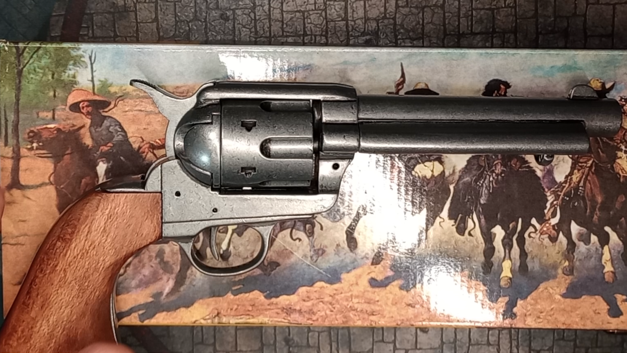 The Denix Museum Replica Peacemaker Toy Cap Gun. A solid single action operating toy pistol but not such a great cap gun. Perfect if your kid wants single action operation. Disappointing if you kid is addicted to the cap pop and sulfur smell.