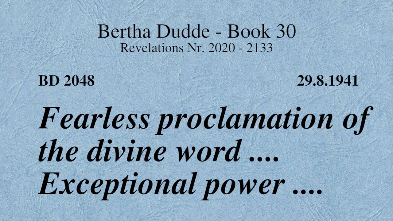 With these words the revelations of God to Bertha Dudde began on June 15, 1937, which found the conclusion on August 17, 1965 with the manifestation 9030 as a seal.