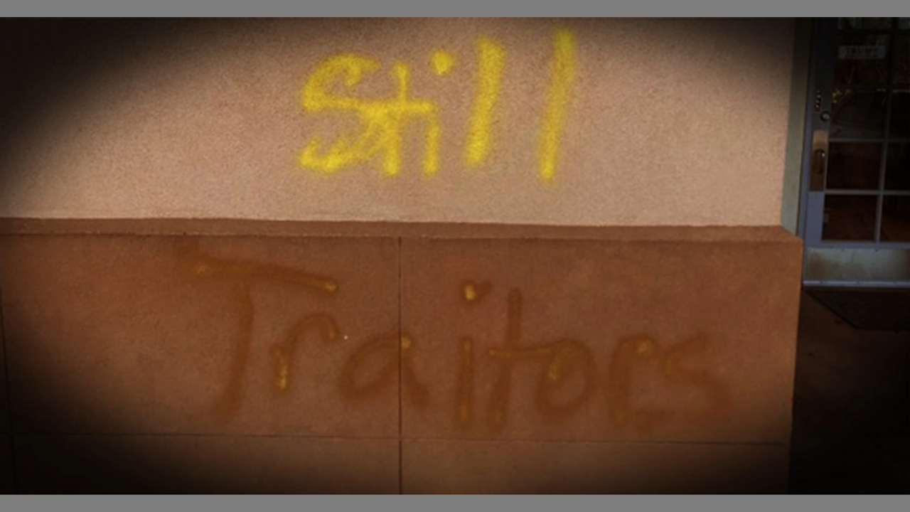 Police in Albuquerque, New Mexico say a man “heavily involved” in the Democratic Party spray-painted the words, “Still Traitors” outside the city’s Republican Party Headquarters.