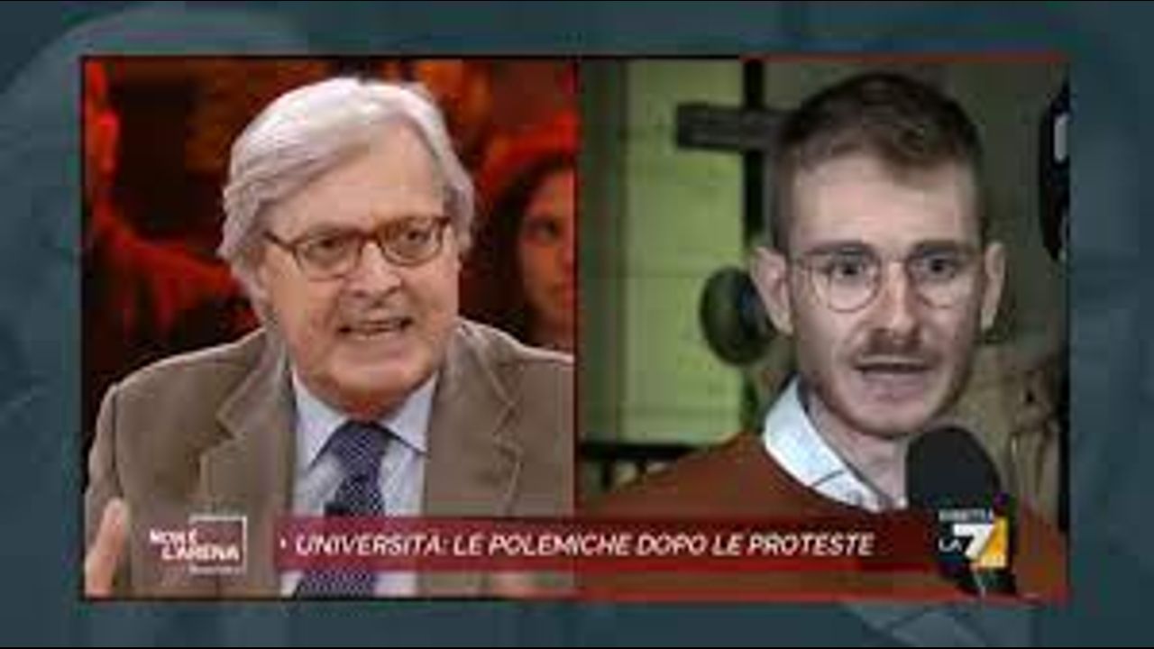 Un grande Sgarbi asfalta lo studente della Sapienza. #NonelArena #Sgarbi #LaSapienza #fascismo