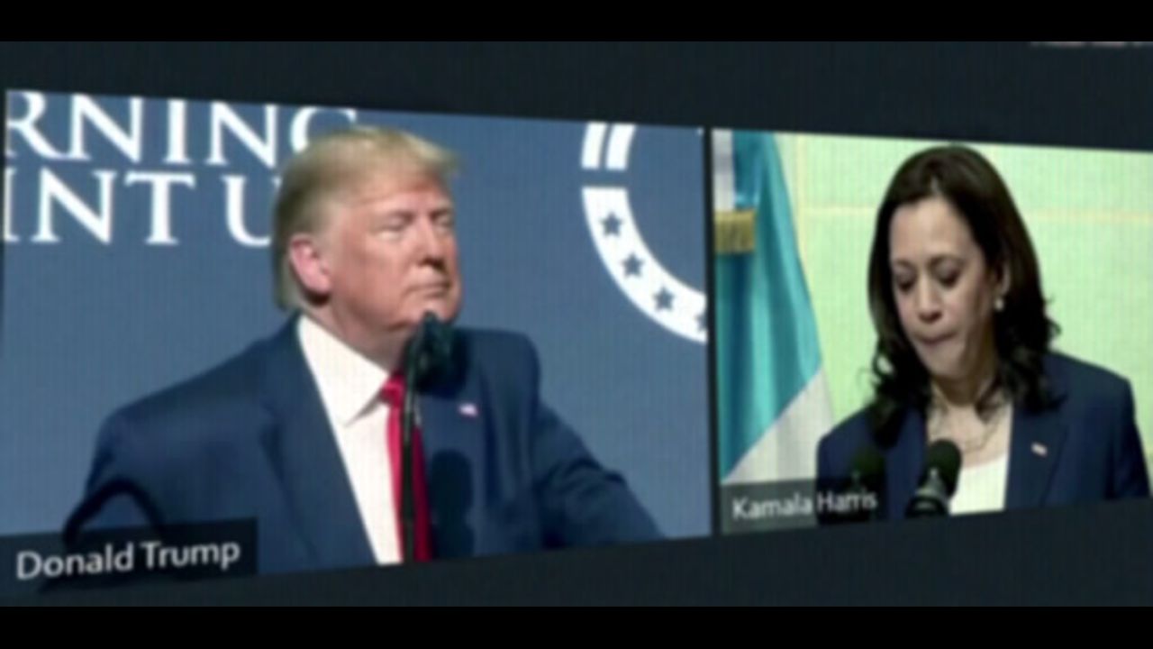 Boris Johnson watches as Kamala Harris warns people not to come