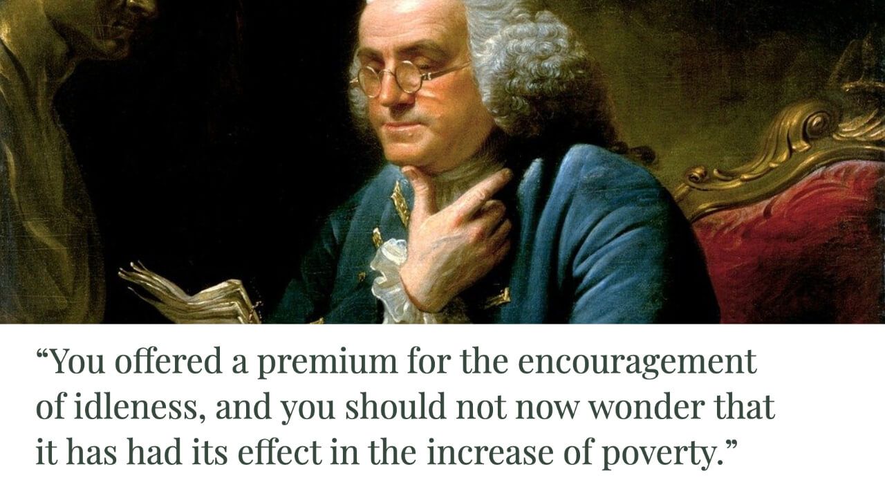 In 1766, Benjamin Franklin knew what most people seem totally clueless about today. Government welfare programs effectively subsidize poverty and ultimately make things worse. Incentives matter.