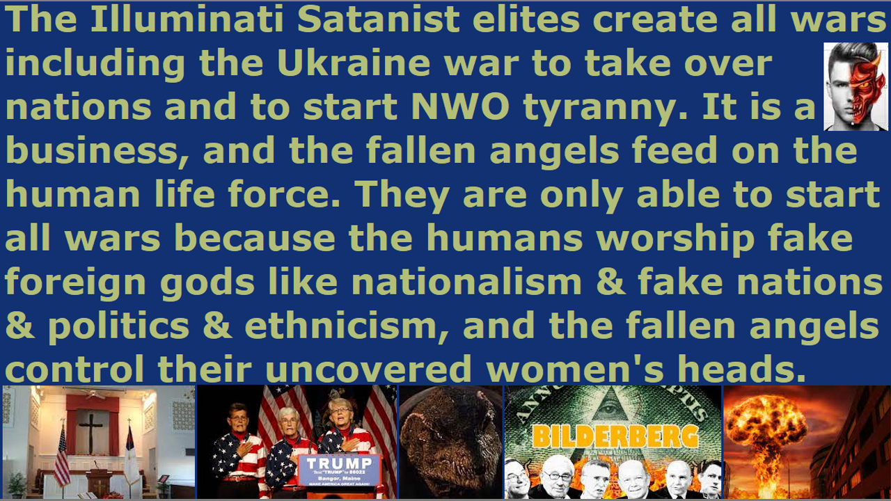 *** Intelligence news update from the Human Homo-Sapiens Race Survival Resistance (HRSR) headquarters and Republic Rebel Alliance battlefront (March 2023). Satan Lucifer’s earth’s hidden matriarchal rulers of the Illuminati rule the earth through their Bilderberg Satanic Druid Council of which the Rothschild family is a member of. They and the Draco reptilian chimera fake alien incarnate avatar black nobility families create and run all the wars on earth. Now, the Pleiadian fallen angel fake alien incarnate avatars and their Shadow Group seem to be in charge, and their Nazi 5th Reich androids and cybernetic hybrids seem to be carrying out the war. The Space Force which runs all the militaries of each nation seem to be run by Satan Lucifer’s nephilim & chimera fake aliens “galactic federation of planets” and the “universal council” which contain millions of species. So when Satan Lucifer’s CIA disinformation agent Steven BenNun misleads all his followers against Israel by saying that the Israelis control the world, it is an absolute farce lie. He covers up all of these groups. He diverts the humans’ attention to politics and nations and social issues and meaningless current events, instead of the issue of repentance. War is made possible by the fallen angels because of the idolatry of the humans that worship nationalism and fake nations and politics and ethnicism. It does make sense, because he and his wife Jana BenNun pervert the Word of God the Bible to their own demonic spirits’ doctrines of Jezebel. When they cover up the devil, and they destroy God’s Word for the devil, then that means they work for the devil. If you hate God’s original Bible verses, and you are a fake Christian rebel and God-hater and idolater and lover of Sananda Jesus & Jezebel & Mammon & Adephagia & hundreds of other redefined Bible verses’ fake foreign gods, then you will get deceived. Satan Lucifer’s Draco reptilian chimera fake alien incarnate avatar black nobility families’ world money management servants the Draco avatar Rothschild family had their reptilian hybrid globalist elites President Roosevelt and Prime Minister Churchill and Draco avatar Queen Elizabeth’s Garter knight servant & general in the British army who was Emperor Hirohito and their Satanist Freemason CIA Harvard-educated Admiral Yamamoto start World War 3, in order to remove all exposure and speech and common knowledge of their Rothschild family crimes, and the Illuminati NWO global government, and the Western Satanist pedophile cannibal feminist earth’s hidden matriarchal rulers, and the black nobility families, from all educational materials and public documents and books and records in Japan after World War 2. They also tried to exterminate the Japanese dragon family and Chinese dragon family by making Asians kill each other, because they consider them inferior cockroach-level creatures for eugenics extermination. It is their Illuminati Satanist depopulation agenda. They do not depopulate themselves and the Dracos and Pleiadians and fallen angels, but they depopulate others. We real Christians belong to the kingdom of God, and there, we have brothers and sisters from every nation and tribe and kingdom, and there is complete peace. It is not a fake peace that the AntiChrist of Satan Lucifer will create by causing World War 3 and nuclear war and famine and plague, so that the people will accept him as their fake hero savior who will deliver them from the destruction and chaos and terror that they will create. That is a fake one-world government peace built on tyranny and a one-world Luciferian religion and a one-world “Mark of the Beast” slavery digital currency economy. It is the devil’s counterfeit AntiChrist kingdom of the true Jesus Christ’s millennial kingdom of peace that God will establish.