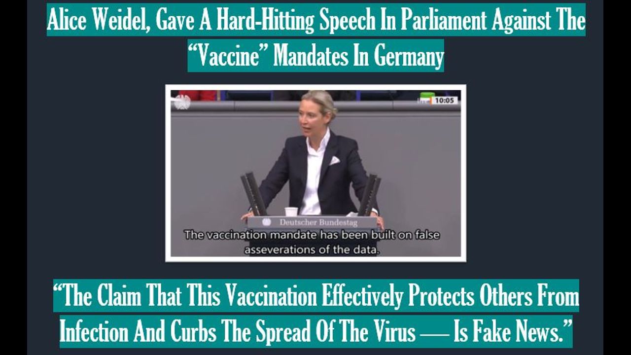 Alice Weidel, the AfD co-leader, gave a hard-hitting speech in Parliament against the potential “vaccine” mandates and suggested “vaccine” register,