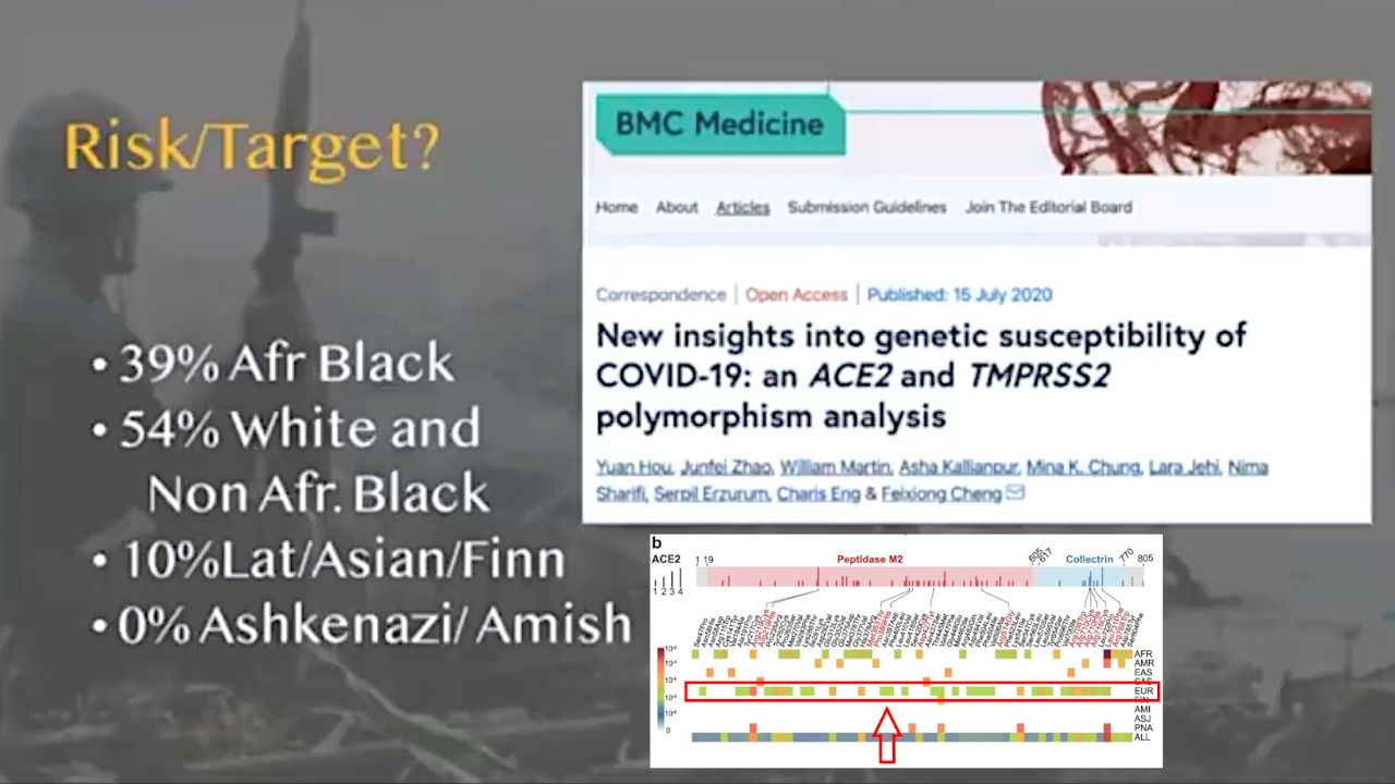 Alternative title I made after the broadcast: SARS-COV-2 is a RACE SPECIFIC BIOWEAPON TO EXTERMINATE ALL NON ASHKENAZI JEWS based on a 2020 study.