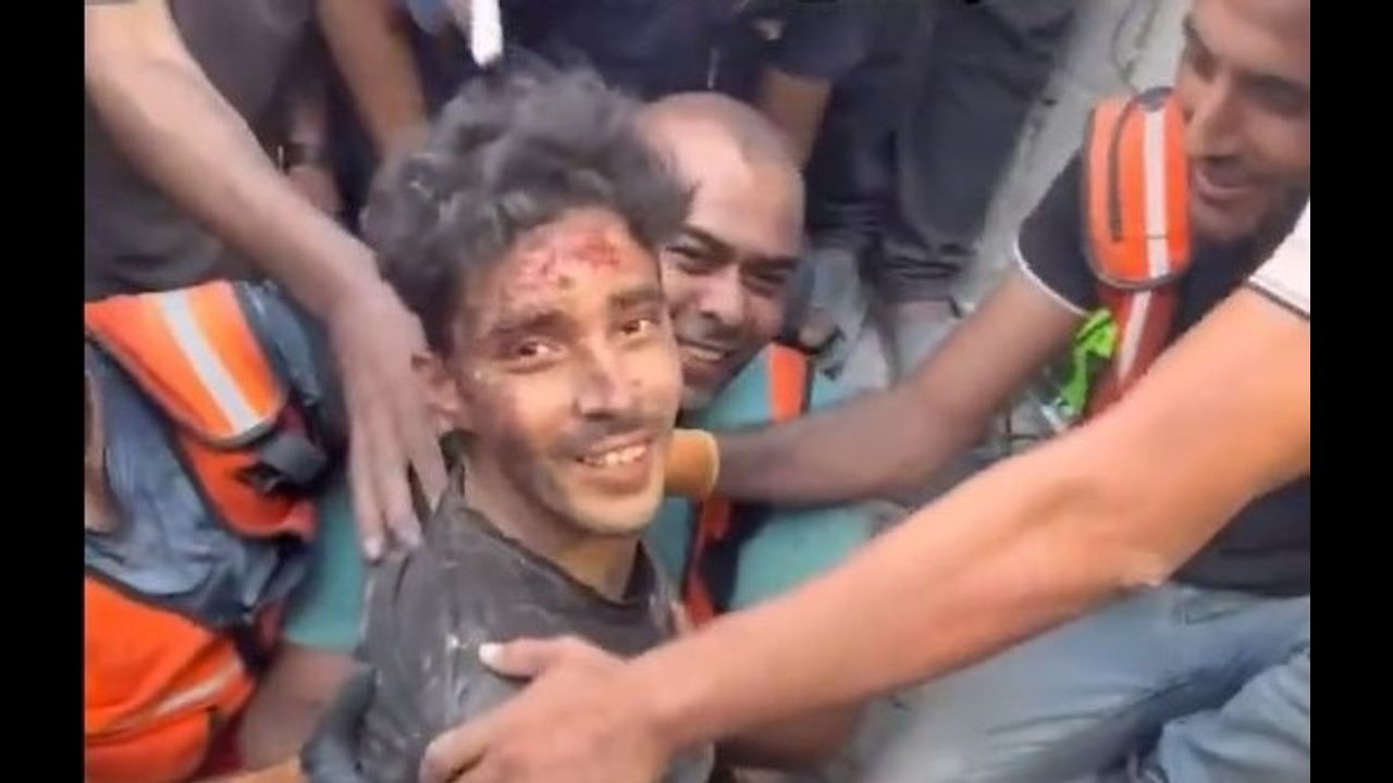 Gaza Civil Defense teams spent eight hours rescuing a young Palestinian man trapped under rubble after an Israeli airstrike destroyed his family’s home.