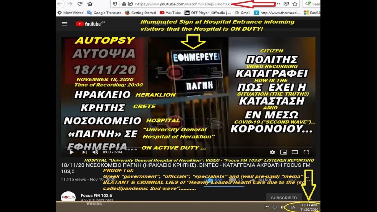 PROOF OF CRIMINAL DECEIT "COVID-19" November 18, 2020, Crete Greece (Please See Eng Transcript on Description) Citizen Recording EMPTY UNIVERSITY HOSPITAL while ON DUTY amid 2nd LOCK-DOWN PLAN-DEMIC..