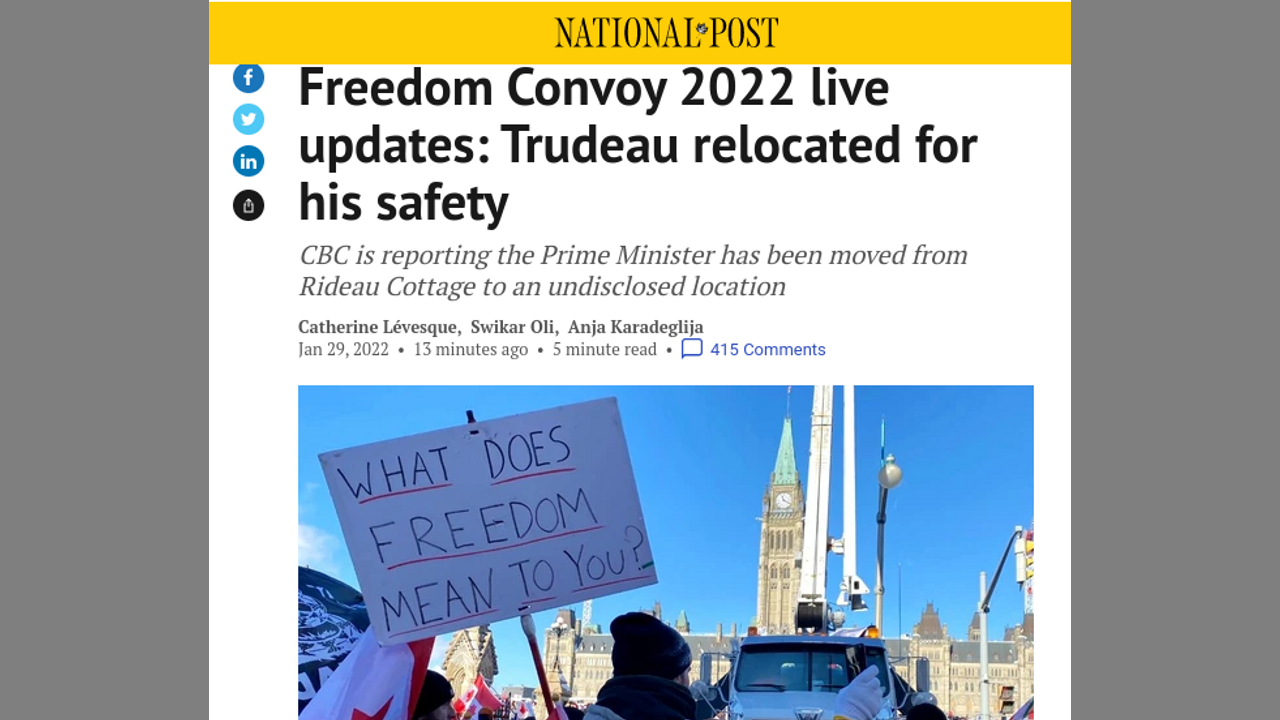 Justin Trudeau is Placed in Protective Custody as a 'Small Fringe Minority' of Truckers Converge on Ottawa