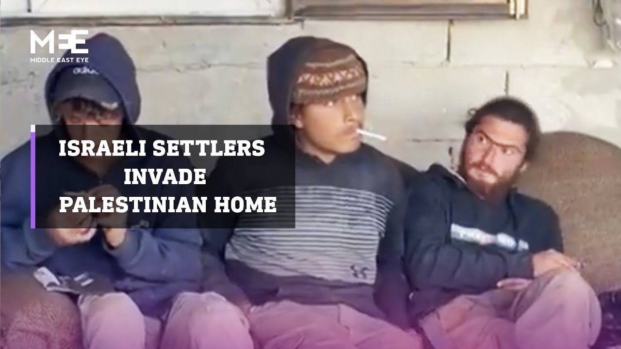 A group of Israeli settlers broke into and invaded the private residence of a Palestinian family in Hebron, occupying their outdoor space and casually smoking cigarettes.