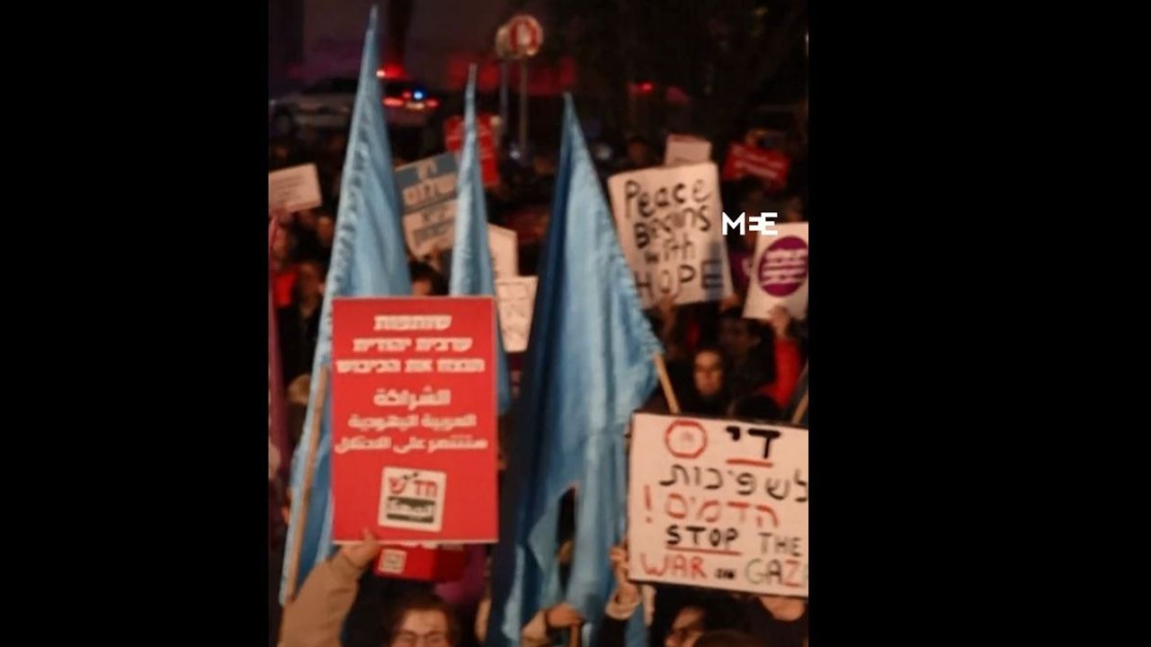 Israel Gaza War Protesters in Tel Aviv call for ending war with Gaza middleeasteye