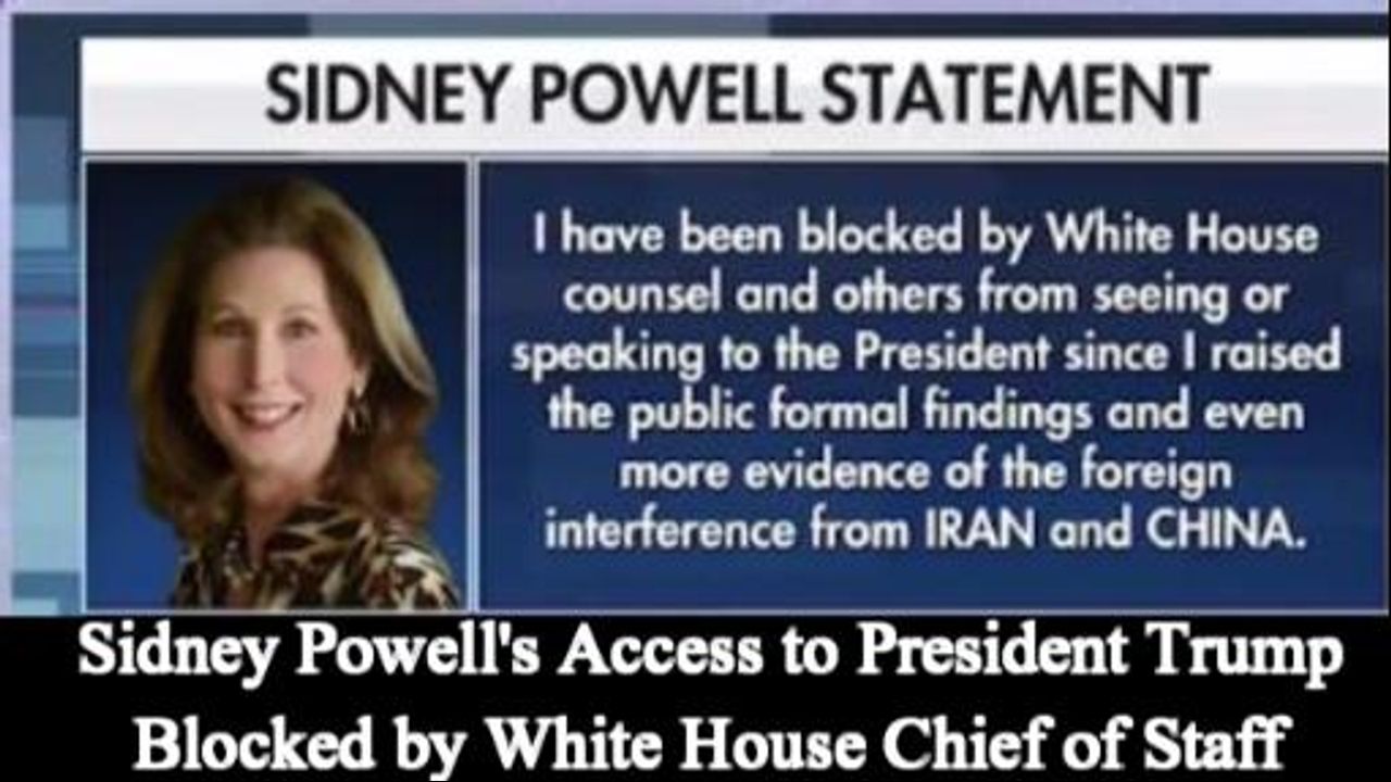 ** Sidney Powell: “I have been blocked by White House counsel and others from seeing or speaking to the President since I raised the public formal findings and even more evidence of the foreign interference from IRAN and CHINA.