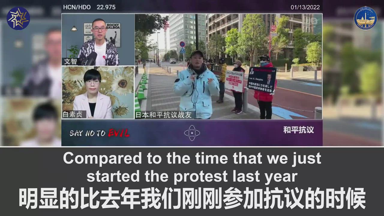 01/13/2023 SAY NO TO EVIL, fellow fighters who are protesting in front of Paul Hastings office building at Roppongi, Tokyo, noticed that our protest draws more attention than it did when we just started the protest last year. Every day, three or four waves of Chinese or Japanese pay attention to us and stop to look at our placards. Some people even stop by to ask questions.