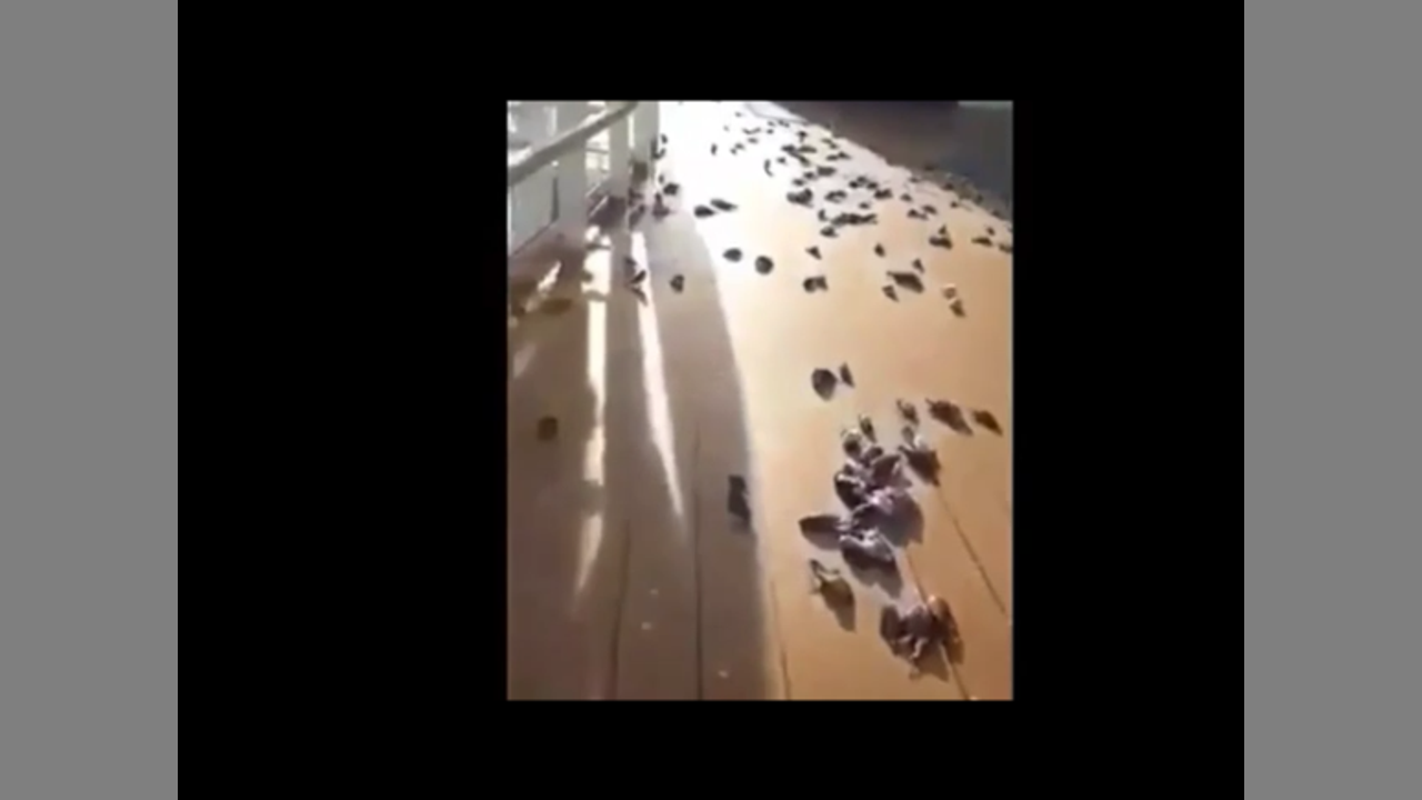 Hundreds of birds were discovered dead on a cruise ship open deck by the crew, yesterday morning. A crew member who wishes to remain anonymous recorded a video of the sight which appears as if the birds had dropped down dead from the sky. There were many birds flying around the ship the night before "It was a beautiful night and we couldn't believe our eyes when we woke up this morning and see so many dead birds all around the ship's open deck" the crew member says.