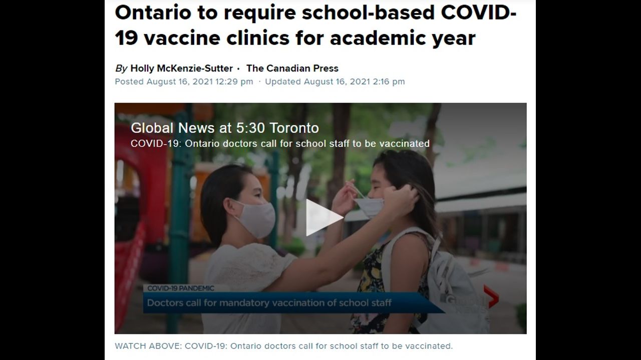 GREAT NEWS...Ontario Requires Vaccine Clinics At Schools