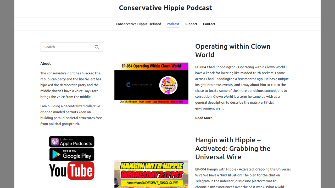 New Interview done on The Conservative Hippie Podcast, Episode 84 "Operating Within Clown World"