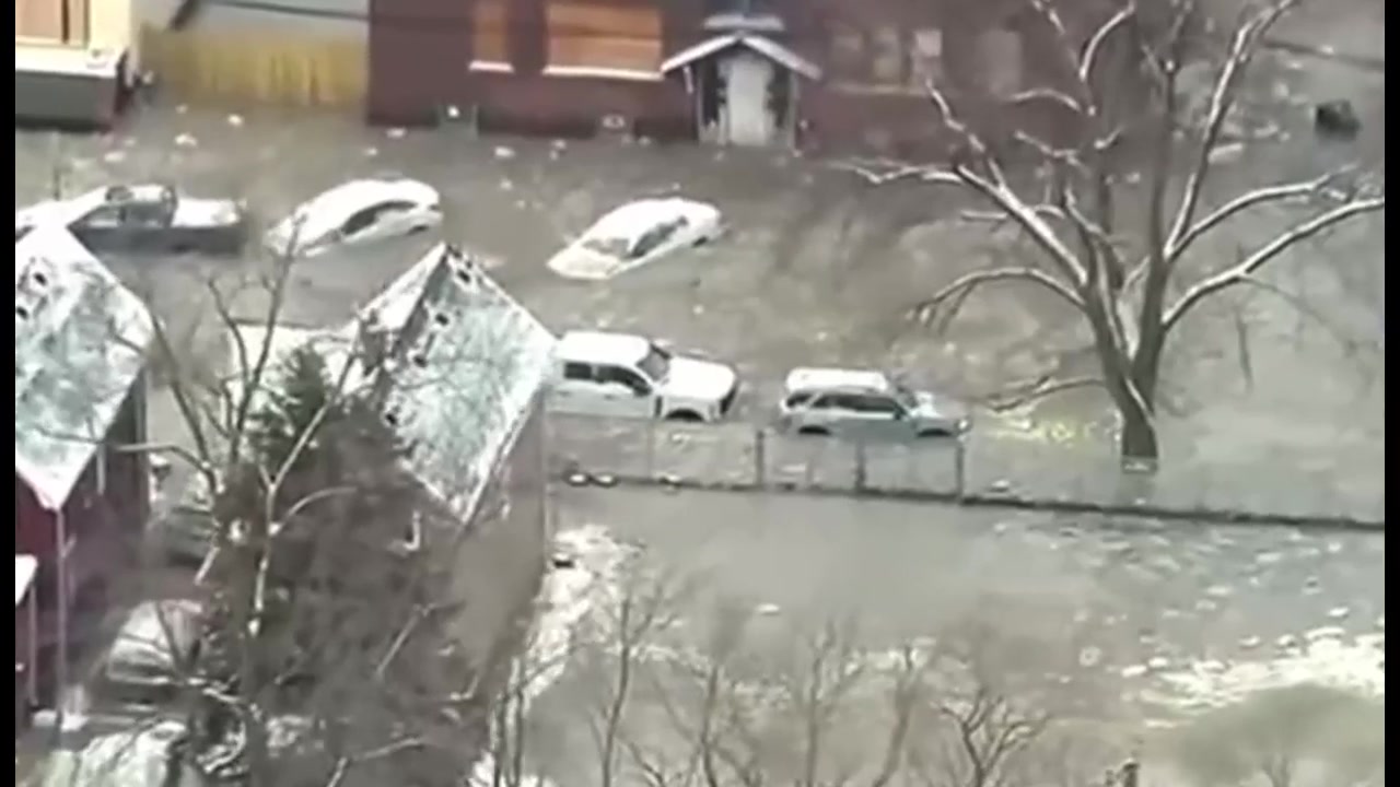 Cars are now completely trapped in thick ice, with some covered in over 1.5 meters of frozen water. Images are flooding local news and social media.