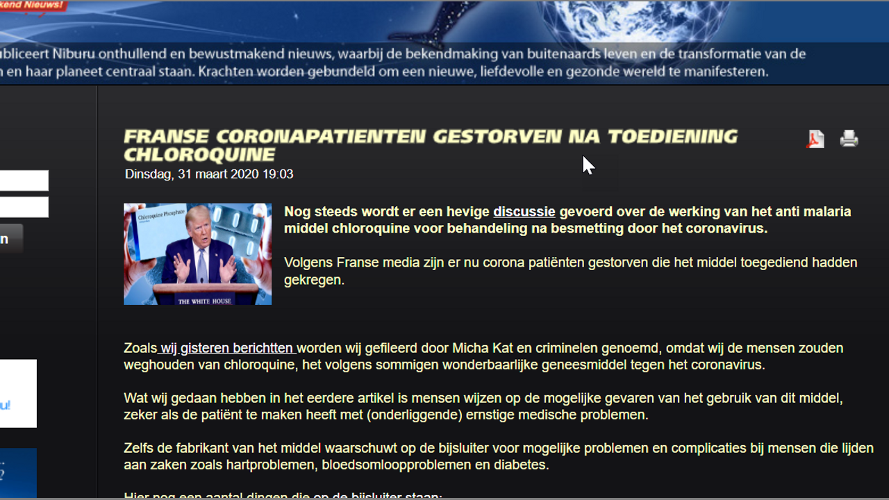 Media-oorlog om chloroquine ongekend; misdadieg rol Niburu.co