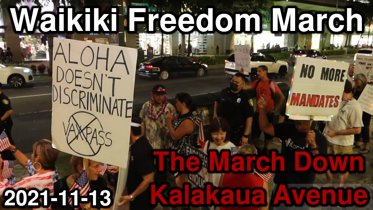 On November 13, 2021 dozens of liberty loving people marched up Kalakaua Avenue to warn people not to give up their freedom. Before the march there was a special guest speaker, Diamond Garcia, who brought us a message of unity for freedom and how we need to vote in local people instead of corrupt buffoons.