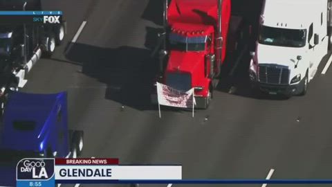 TRAFFIC ALERT: A group of Big-Rig drivers protesting high gas prices are blocking lanes of the southbound 5 freeway, near the 134 freeway, in Glendale.