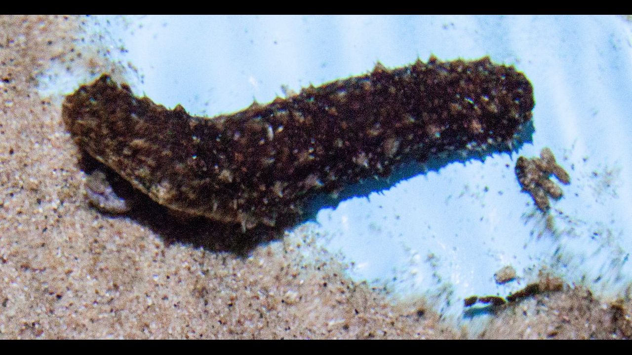 The picture used is "Sea cucumber in Rhodes Aquarium" by Szilas, which was released into the public domain.