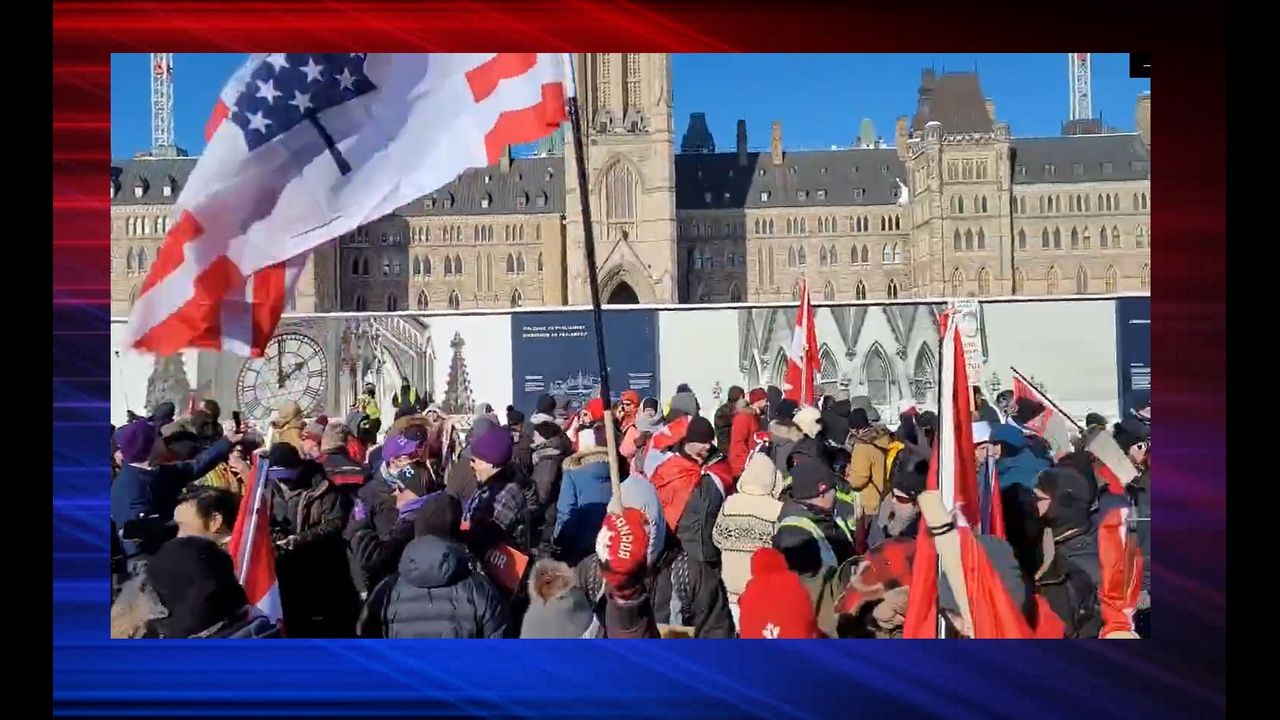 Ottawa Parliament Scene... Peaceful Protesters Celebrate Freedom Convoy .... Sounding Lakota!!!