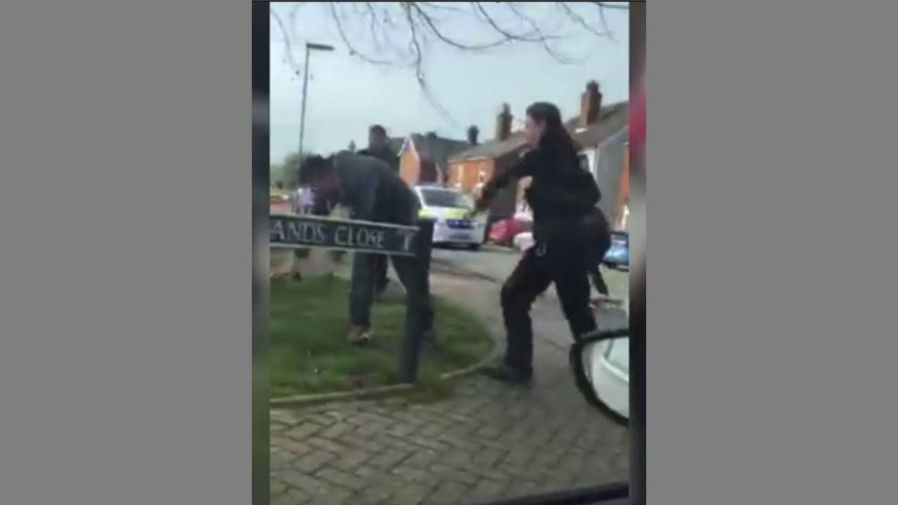 A man was later charged with assaulting a police officer after the dramatic incident at 11.30am in Horley on Saturday.