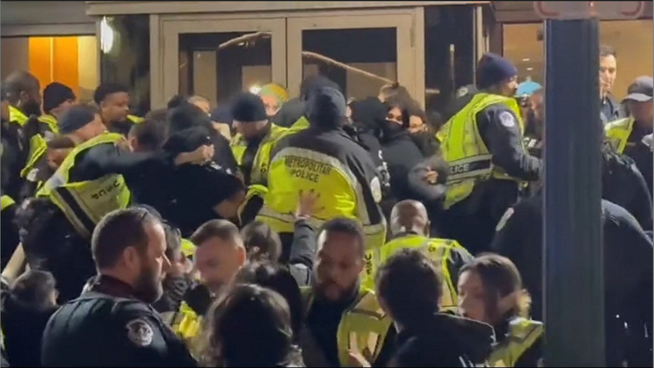 Why are police there instead of social workers? Utter chaos outside the DNC HQ in Washington DC