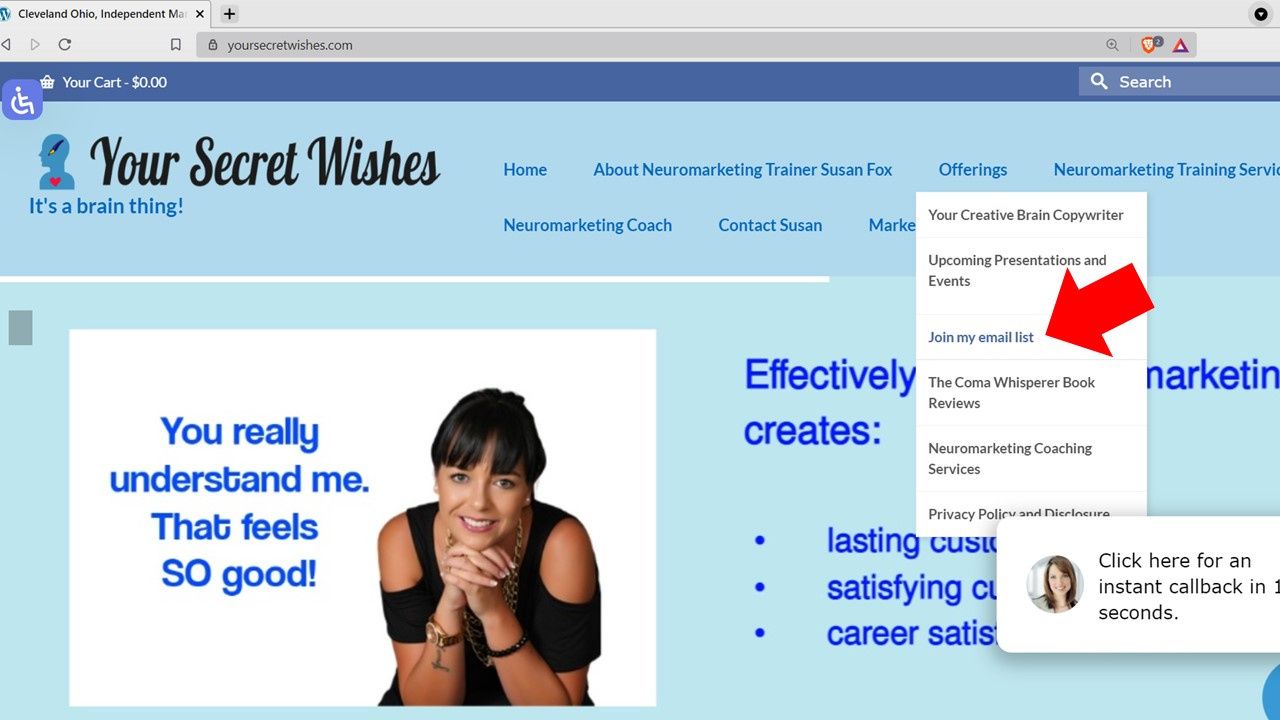 Remember my name, Susan Fox. Go to the home page of my website, Your Secret Wishes dot com.