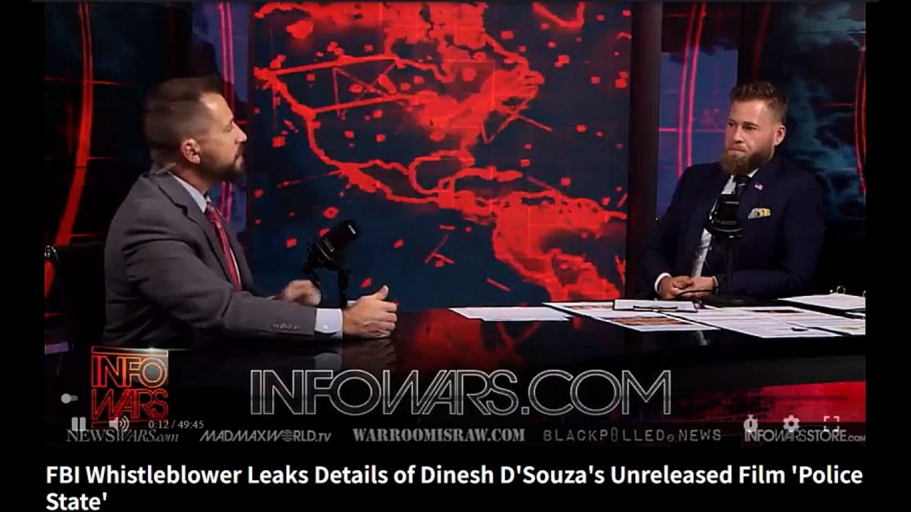 joins hots Owen Shroyer on The Alex Jones Show to discuss details of the upcoming Dinesh D'Souza film 'Police State.'
