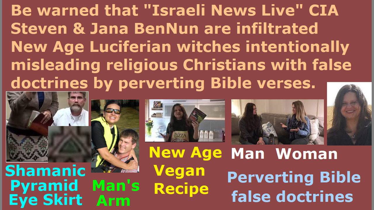 The very fact that they are continuously warping Bible verses to mean different things and making them into metaphors, and selling EMP shields in their Christian ministry, and begging for donations, and asking for human medical donations for their own illnesses, and propagating New Age witches’ feminist ideologies by redefining Bible verses, and conducting medical and science and alchemy witchcraft instead of repenting of them, and associating with medical people and New Age witches, and trying to lead all the nations against Israel, although they claim that it is only against Jared Kushner’s boyfriend Benjamin Netanyahu and other Israeli government Draco avatar Satanist Zionist leaders, and providing information only to paying Patreon members, and wearing Illuminati New Age symbol clothes, and spreading wrong information about the Mark of the Beast by twisting the Bible verses, is a red alert sign for all real Christians. I am not even sure if Jana BenNun is a woman anymore, but perhaps a man, because all these Illuminati people invert their body’s gender. Her arms and jaw and neck and body do not look like a woman They are the Pied Pipers of the religious Christian hordes. Steven BenNun, who belongs to the Chabad Kabbalah witchcraft organization and doctrines, uses many different names like DeNoon, but he is saying that Eve is not Eve but she is a mother goddess of fertility Isha or Isis, which is a New Age Luciferian doctrine. He is a deceiver, and he is financed by the CIA. They are teaching that the Bible is wrong and Eve was not created from Adam’s rib, but she was made from God. They use all kinds of fake Hebrew language to twist the Bible meaning. Jana is saying that New Age witchcraft herbs and alchemy is alright and the church killed the Christian witches wrongfully. Jana is a New Age witch infiltrator. They use criticism of the Jehovah’s Witness cult’s behaviors, in order to criticize Christian doctrines by equating Christianity to the Jehovah’s Witness cult. Steven and Jana always uses the Hebrew words, because most people do not know Hebrew, in order to twist the meaning of the Bible and make up their own New Age Luciferian Satanist doctrines. For example, they say wives should not submit to their husbands, because the word submit is not in the Bible and it is a wrong translation, and the original Hebrew word does not say submit. The word in Hebrew means submit, but they use the ignorance and laziness and pride of the religious Christians to deceive them, just like Satan Lucifer deceived Eve in the Garden of Eden. Jana says she has a problem with the Bible’s teachings on women’s head coverings, because the Jehovah’s witness cult taught women’s head coverings. Therefore, she is making the Bible and God’s Word equivalent to the Jehovah’s Witness cult false doctrines. This is typical deception of cult people. Steven says Apostle Paul is wrong and he is “off his rocker” crazy. They are saying that if you follow men, you will go to hell, because all cults follow men. They are professional deceivers. This is what the Hebrew Roots people do by using the twisted Hebrew words to confuse people and change the Bible, and by saying that they are leading the people back to the proper Hebrew Roots doctrines, which is a lie. They always equate proper Christian doctrines with the false doctrines of cult groups to try to disqualify the proper biblical doctrines. What they also do is use lying history and customs and traditions to try to quality their false doctrines by using that fake historical meanings to change the Bible’s meanings. They are professional deceivers. They say things like you do not need to submit to men to go to God, so you do not need to submit to your husbands. Satan Lucifer takes hold of the women’s prideful heart by saying that you can be the priest in the home, too, which is what Jana is saying, and that is the same as what Satan told Eve in the Garden of Eden.
