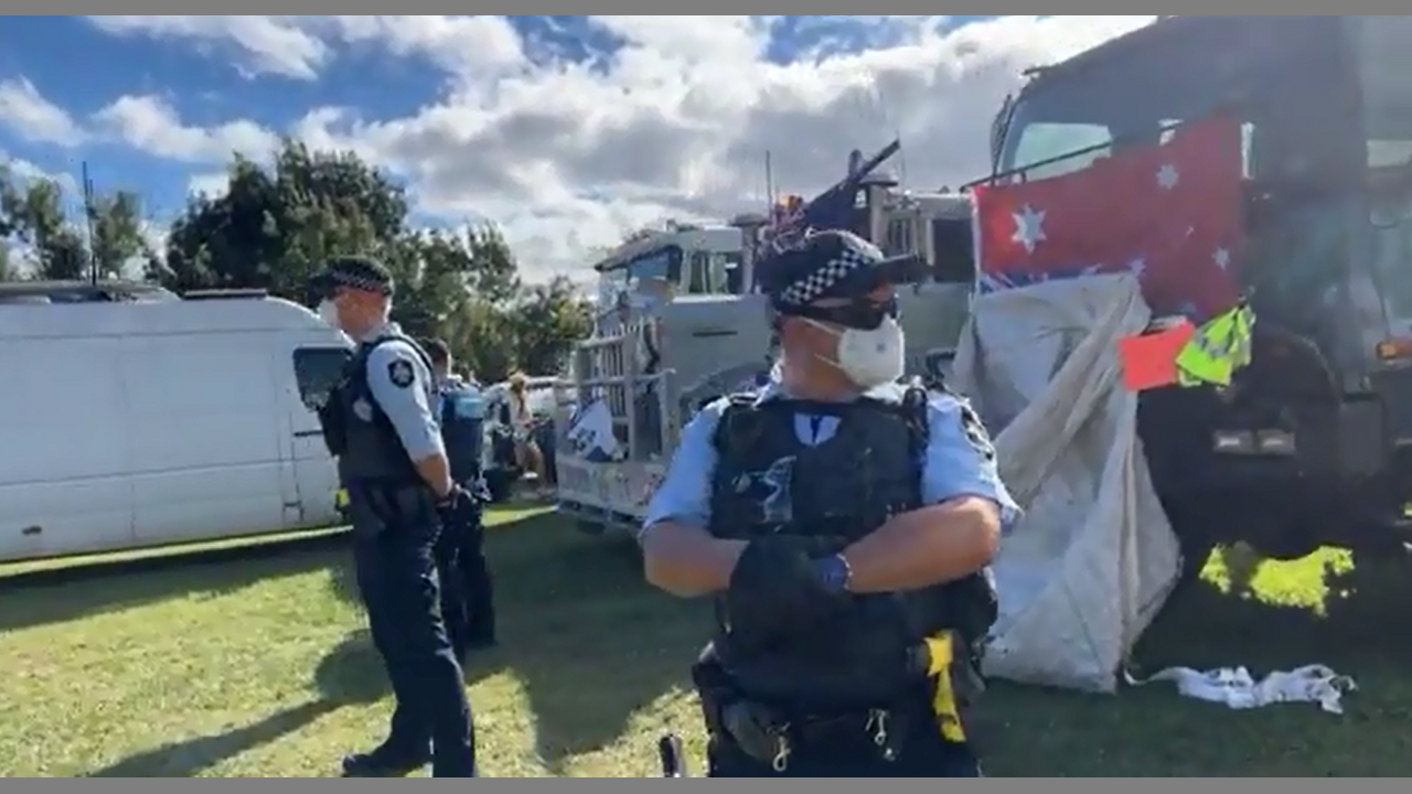 Canberra Australia Feb3rd Freedom Convoy 2022 Campsite Raided by Police